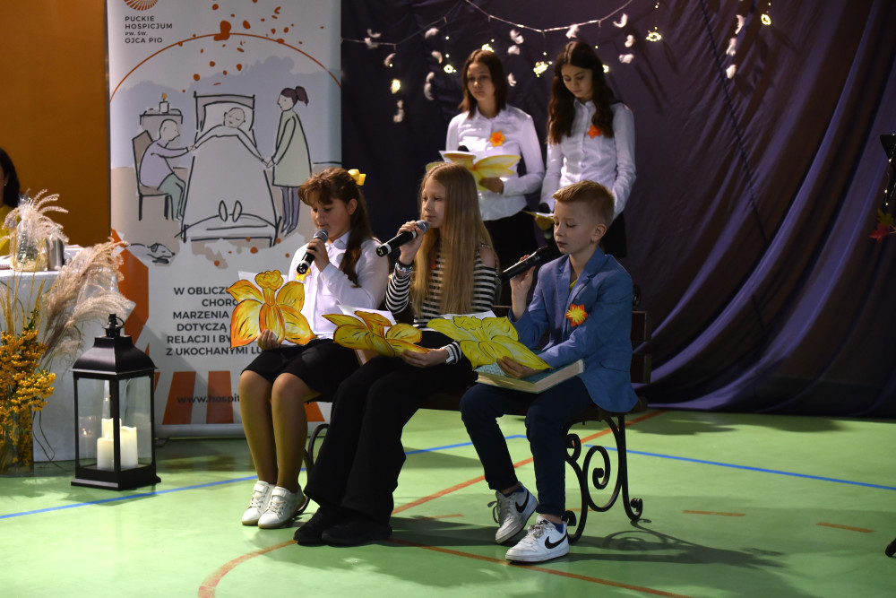 Kampania „Pola Nadziei” to ogólnoświatowa kwesta na rzecz osób objętych opieką hospicyjną. Na swój symbol hospicja z całego świata wybrały żółty kwiat – żonkil. Program „Pola Nadziei” zapoczątkowany został przez Fundację Marie Curie Cancer Care z Edynburga w Wielkiej Brytanii. Od 2003 roku „Pola Nadziei” to program ogólnopolski. Jednym z najważniejszych celów tej akcji jest wychowywanie młodego człowieka do wartości takich jak: wrażliwość na potrzeby drugiego człowieka zwłaszcza cierpiącego, bezinteresowne angażowanie się w działania na rzecz niesienia ulgi i pomocy cierpiącemu człowiekowi, postawa reagowania z empatią na cierpienie, podkreślanie godności ludzkiej osoby, czerpanie radości z dzielenia się swoimi dobrami z ludźmi cierpiącymi. Żonkile są międzynarodowym symbolem akcji „Pola Nadziei", a żonkile zasadzone jesienią przy naszej szkole zakwitną na wiosnę, o porze, w której wszystko budzi się do nowego życia. Cieszymy się, że nasi uczniowie mogą przyłączyć się do tej szlachetnej akcji. Dziękujemy zaproszonym Gościom za przybliżenie nam ideii pomocy tym, którzy przechodzą na drugą stronę życia. Uczniom klasy siódmej, ósmej i czwartej oraz pierwszakom dziękujemy za dostarczenie wzruszajacych emocji w przekazie słownym, muzycznym i tanecznym.
